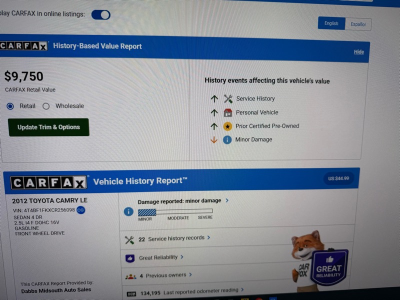 Message: Thought you might be interested in this 2012 Toyota Camry.