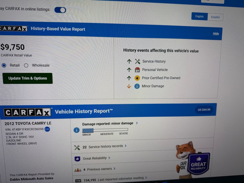 Clean Title Camry LE. Power Sriver’s Seat, Audio Control Steering Wheel and a Good Service History. View the free Carfax at
